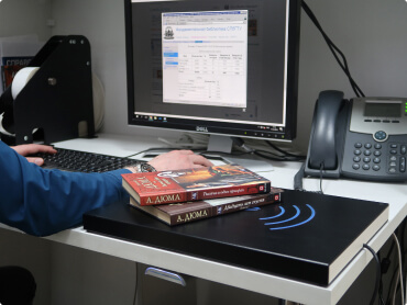 Настольные рабочие станции позволяют сотрудникам библиотеки оперативно обслуживать большой поток посетителей, благодаря сведению к нулю ручного ввода данных.